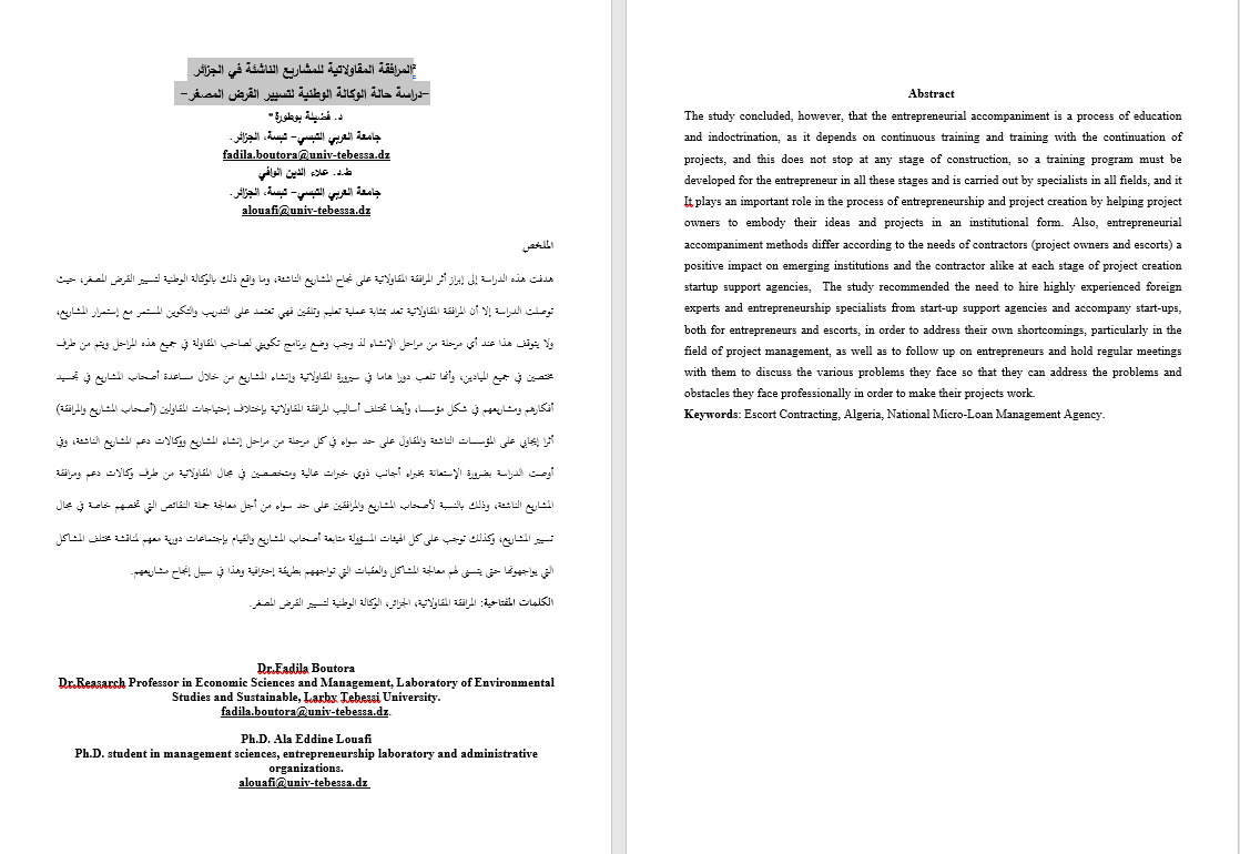 هدفت هذه الدراسة إلى إبراز أثر المرافقة المقاولاتية على نجاح المشاريع الناشئة، وما واقع ذلك بالوكالة الوطنية لتسيير القرض المصغر، حيث توصلت الدراسة إلا أن المرافقة المقاولاتية تعد بمثابة عملية تعليم وتلقين فهي تعتمد على التدريب والتكوين المستمر مع إستمرار المشاريع، ولا يتوقف هذا عند أي مرحلة من مراحل الإنشاء لذ وجب وضع برنامج تكويني لصاحب المقاولة في جميع هذه المراحل ويتم من طرف مختصين في جميع الميادين، وأنها تلعب دورا هاما في سيرورة المقاولاتية وإنشاء المشاريع من خلال مساعدة أصحاب المشاريع في تجسيد أفكارهم ومشاريعهم في شكل مؤسسا، وأيضا تختلف أساليب المرافقة المقاولاتية بإختلاف إحتياجات المقاولين (أصحاب المشاريع والمرافقة) أثرا إيجابي على المؤسسات الناشئة والمقاول على حد سواء في كل مرحلة من مراحل إنشاء المشاريع ووكالات دعم المشاريع الناشئة، وفي أوصت الدراسة بضرورة الإستعانة بخبراء أجانب ذوي خبرات عالية ومتخصصين في مجال المقاولاتية من طرف وكالات دعم ومرافقة المشاريع الناشئة، وذلك بالنسبة لأصحاب المشاريع والمرافقين على حد سواء من أجل معالجة جملة النقائص التي تخصهم خاصة في مجال تسيير المشاريع، وكذلك توجب على كل الهيئات المسؤولة متابعة أصحاب المشاريع والقيام بإجتماعات دورية معهم لمناقشة مختلف المشاكل التي يواجهونها حتى يتسنى لهم معالجة المشاكل والعقبات التي تواجههم بطريقة إحترافية وهذا في سبيل إنجاح مشاريعهم.